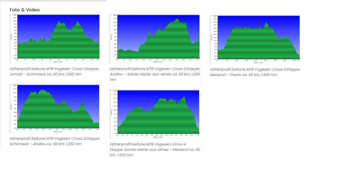 Nous proposons le Cross des Vosges à VTT du 18 au 21.05.2023 (Ascension) dans sa version raccourcie en 4 étapes et un maximum de 1.300 m D+ /jour (Départ après Schirmeck).